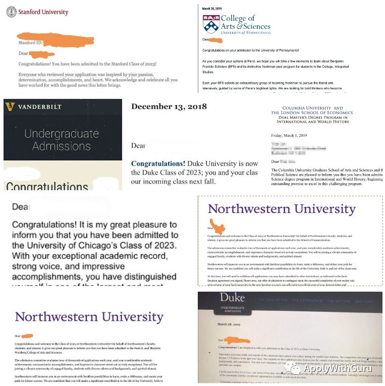 2018-2019届应届申请指导的学生数量有限,几乎一半人已经在EA,ED轮次拿到Chicago, Duke,Northwestern, NYU,等学校的Offer,所以RD轮学生数量比较少,但是仍然收获了很好的结果。28日发布朋友圈,我预计本季申请已经结束,没想到后续又来了一个迟到的斯坦福。(最后一枚斯坦福太过特殊,案例也无参考价值,此处略去不表)